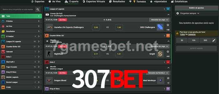 O 307bet oferece uma grande seleção de opções de apostas em e-sports com probabilidades competitivas